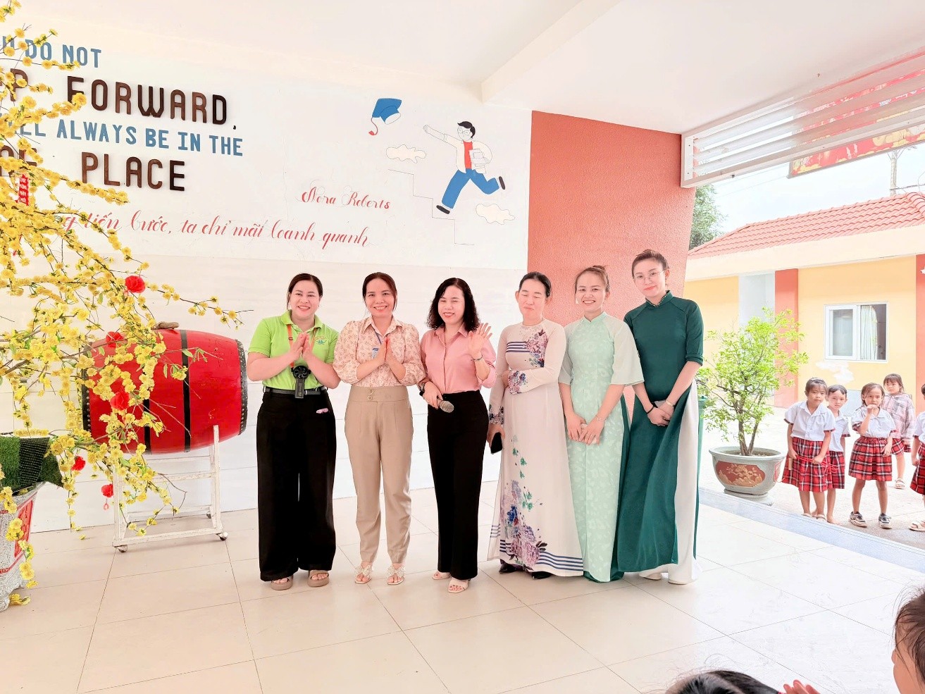 Cùng các cô giáo của trường mầm non Long Tân
